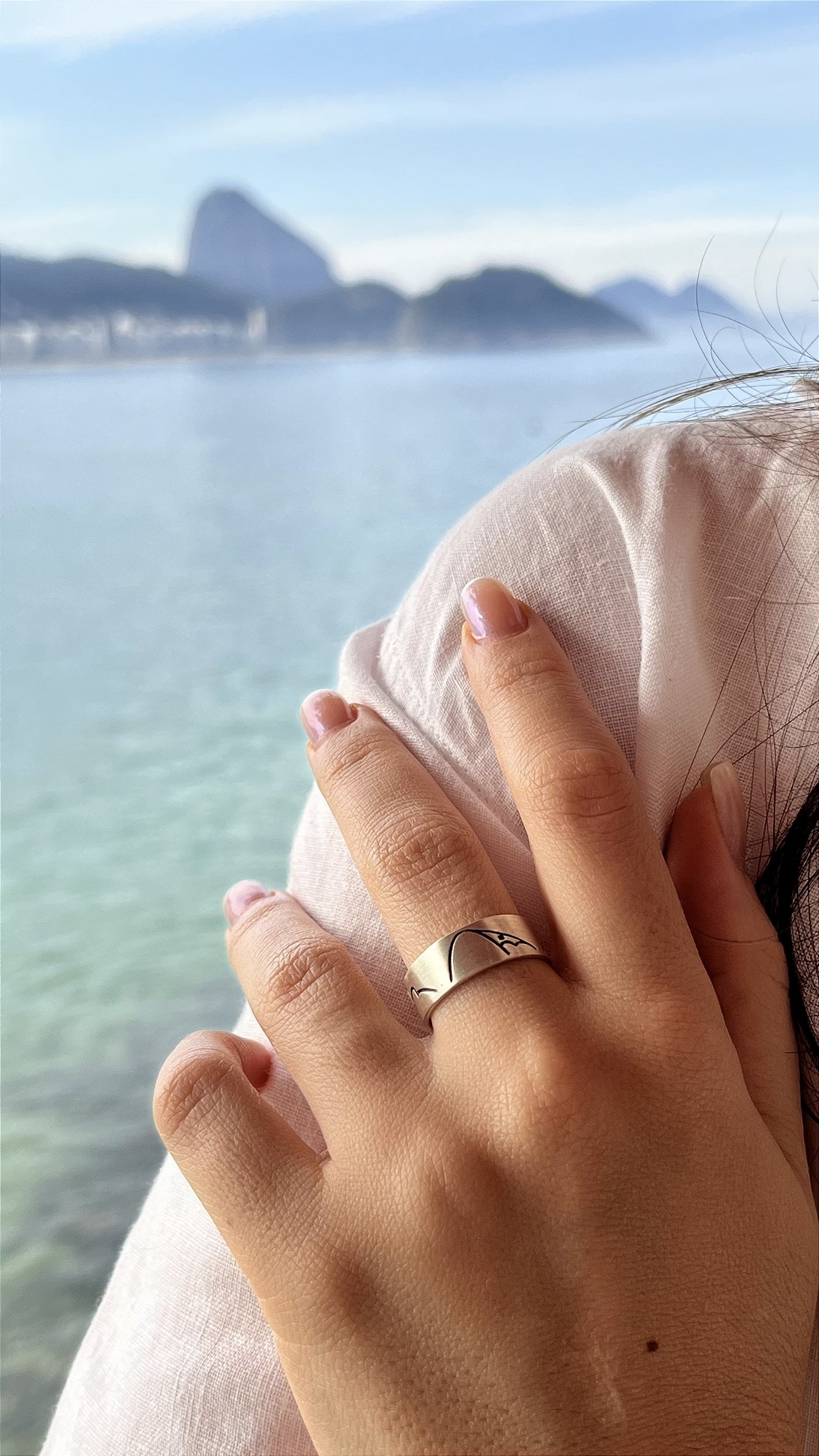 Anel Rio aberto com Pão de Açúcar, Corcovado e Morro Dois Irmãos feito em prata.