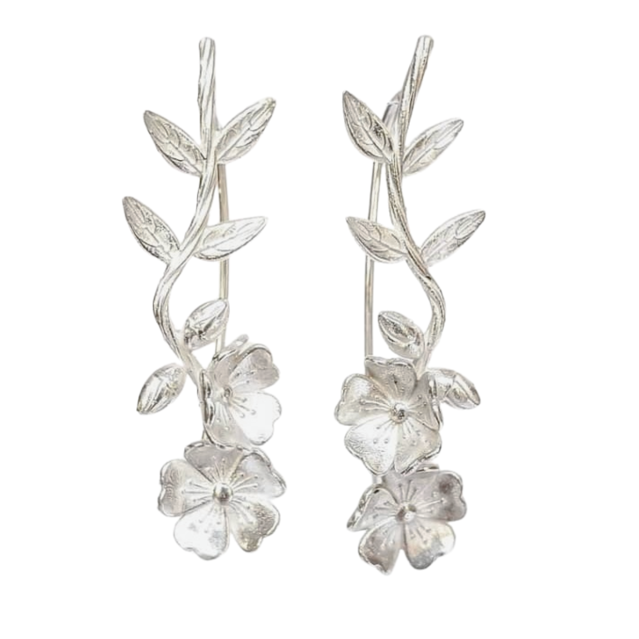 Brinco flor de cerejeira Sakura prata gancho em prata 925. Medidas 4,5 cm x 1,0 cm.