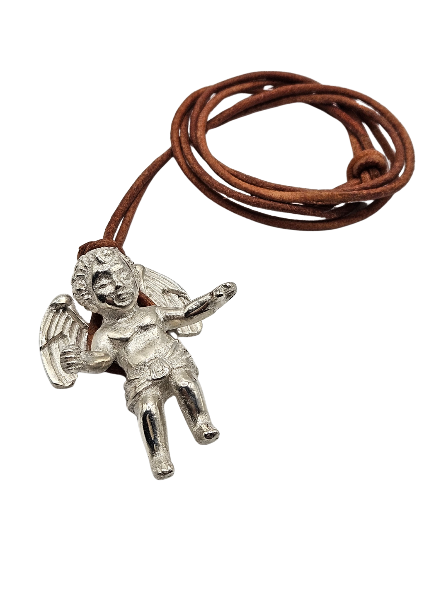 Pingente Anjo Barroco com cordão couro.