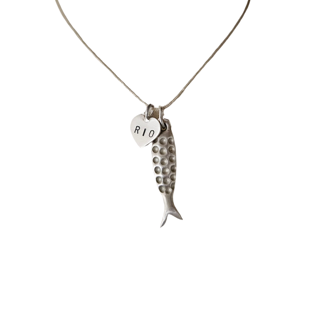 Pingente peixe em prata M e Coração Rio em prata