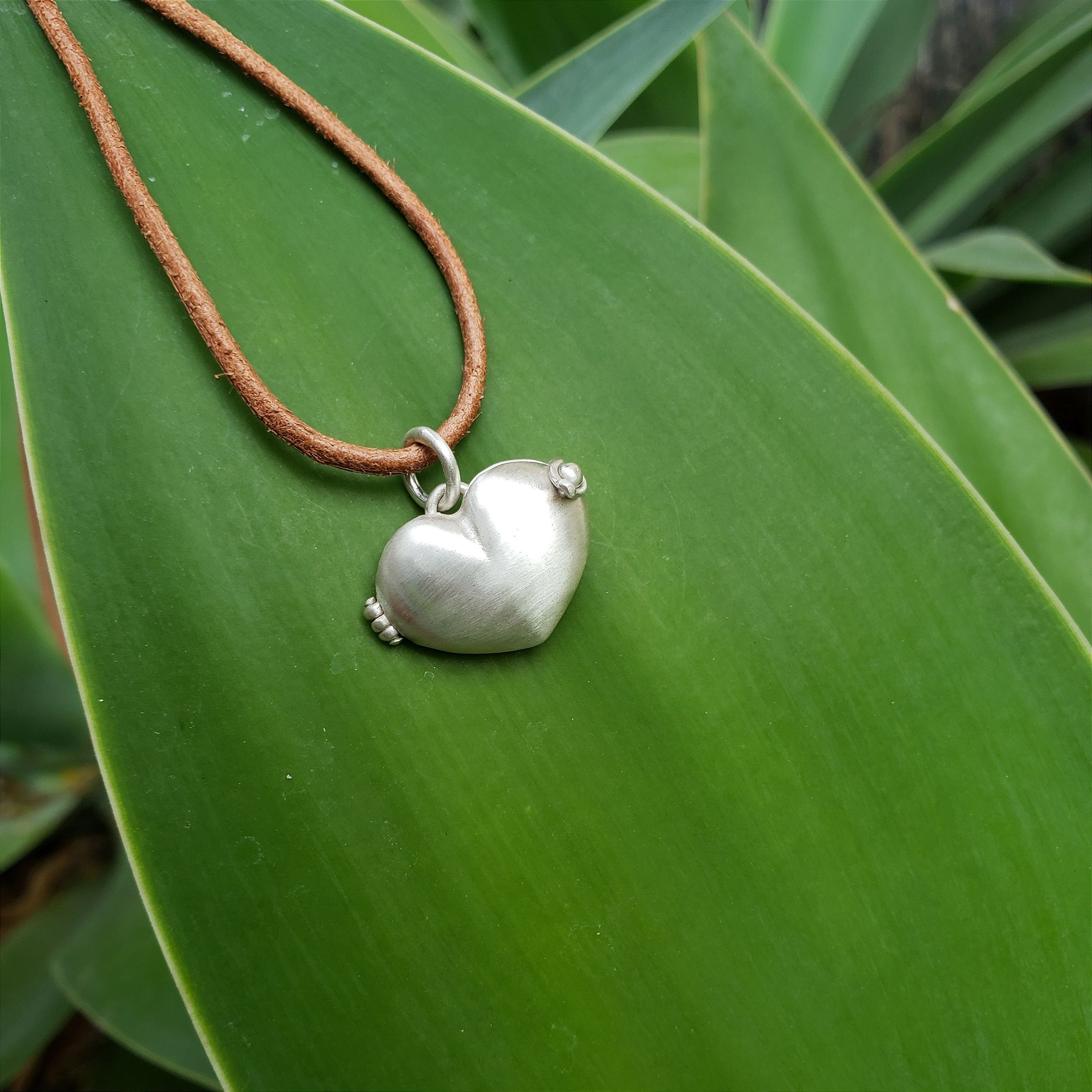 Relicário em prata em formato de coração. Medidas 2 cm de largura x 1,5 cm e 0,57 cm de altura.